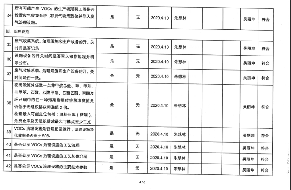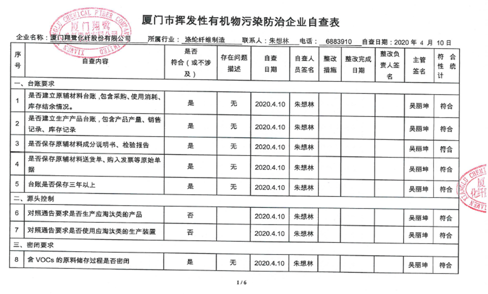 廈門市揮發(fā)性有機(jī)物污染防治企業(yè)自查表(2020年第一季度)